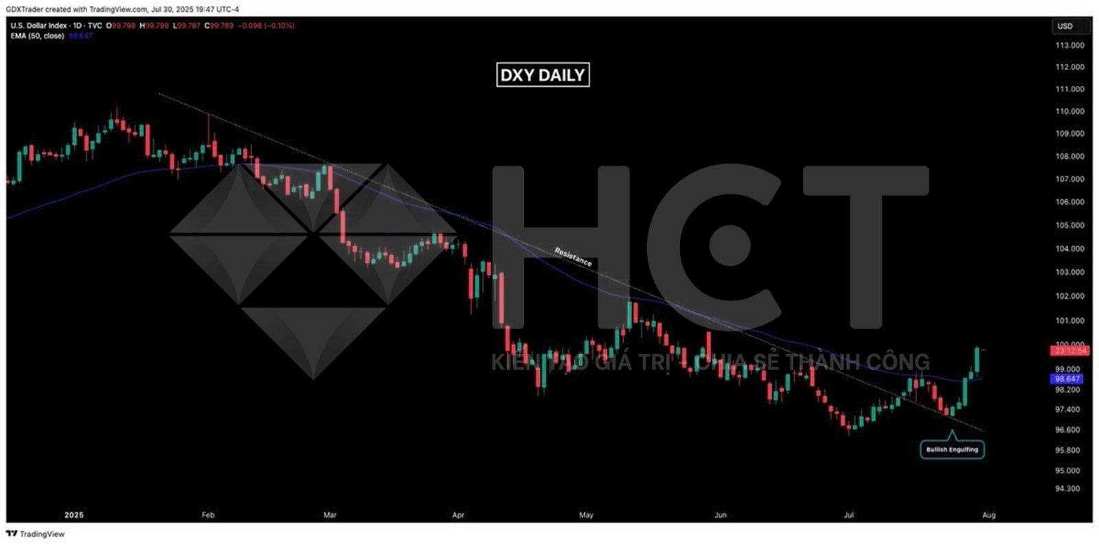 DXY xác nhận tạo đáy và tiếp tục xu hướng hồi phục. Điều này gây áp lực lên thị trường hàng hóa, đặc biệt là kim loại