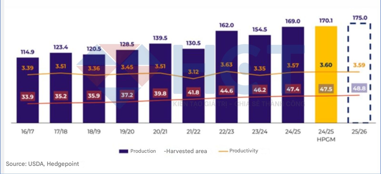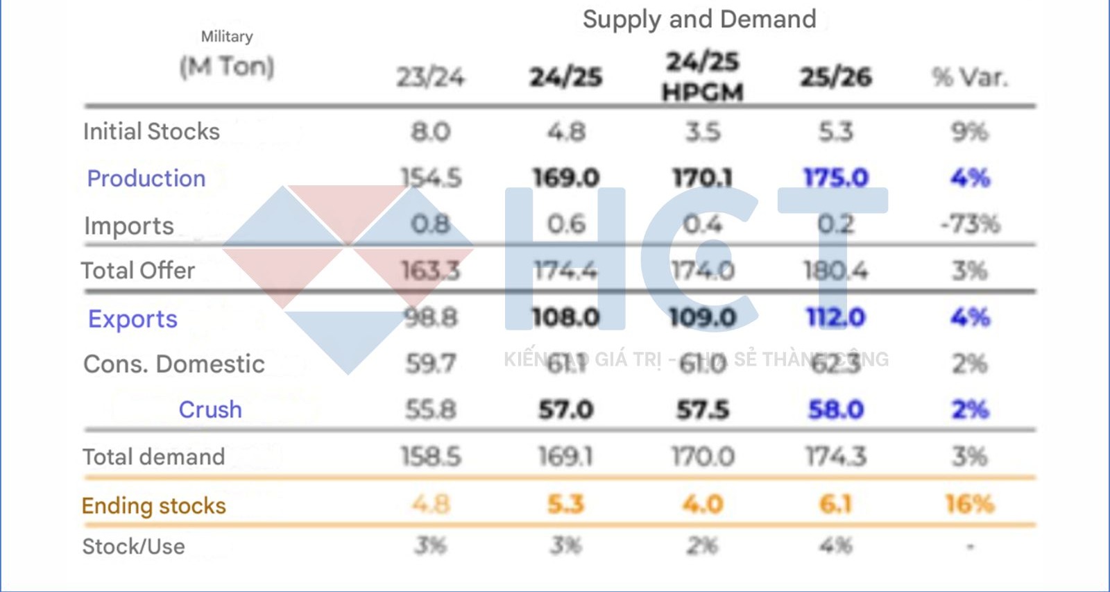 Về trung và dài hạn (2025/26), yếu tố thời tiết, dịch chuyển diện tích trồng, và thay đổi cấu trúc nhu cầu toàn cầu (thức ăn chăn nuôi và nhiên liệu sinh học) sẽ là những biến số chính quyết định xu hướng thị trường đậu tương và các sản phẩm phụ.