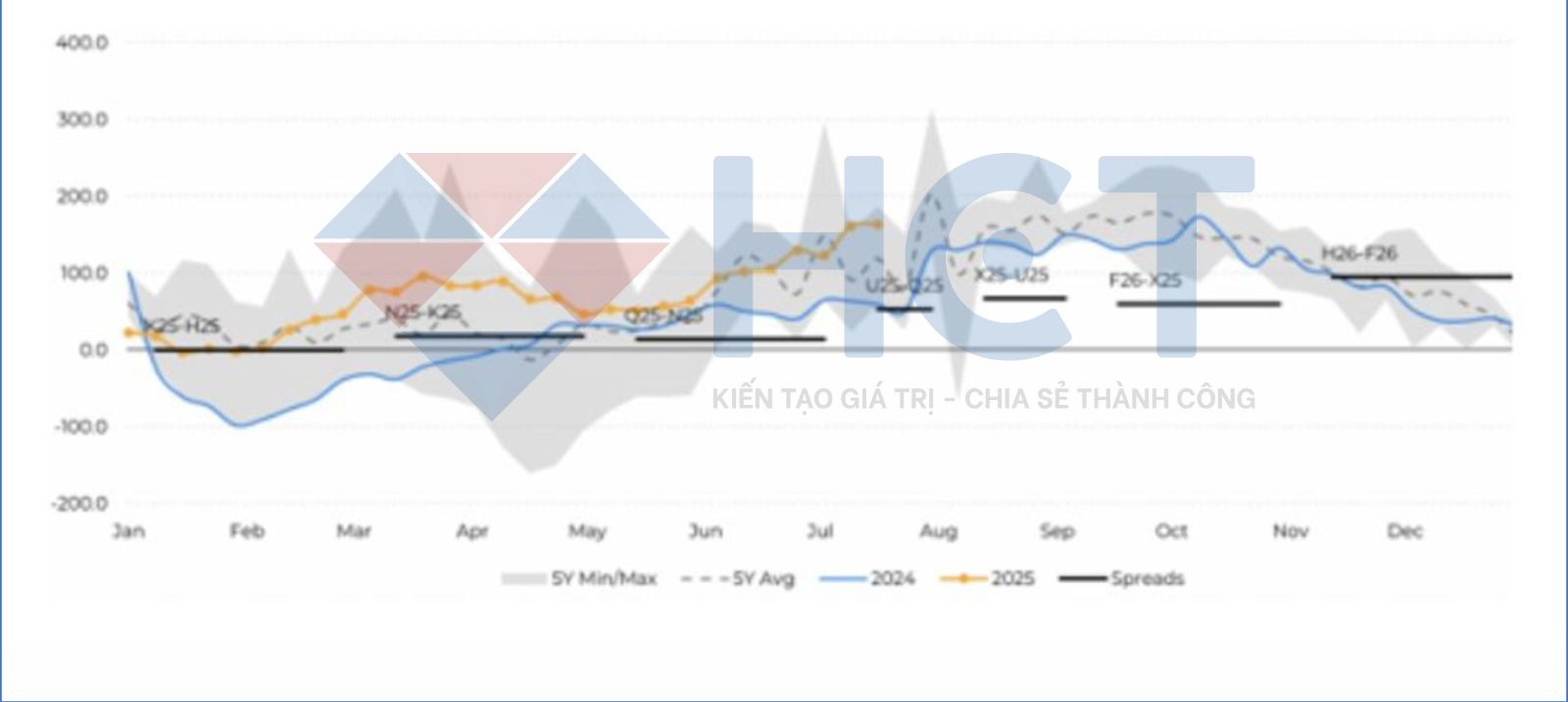 Diễn biến chênh lệch Hợp đồng Tương lai Đậu tương 2024–2025